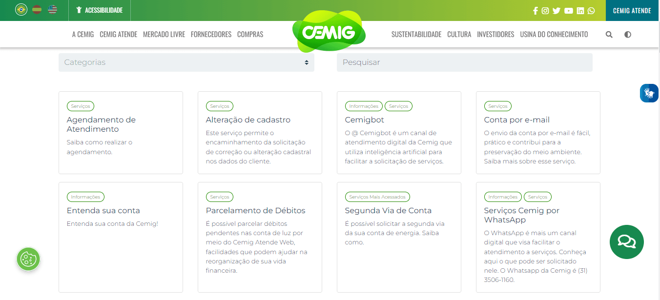 O Cemigbot é o assistente virtual da Cemig. Você pode solicitar alguns serviços pelo chat de atendimento automático sem precisar conversar com nenhum atendente. Clique aqui para usar o Cemigbot.