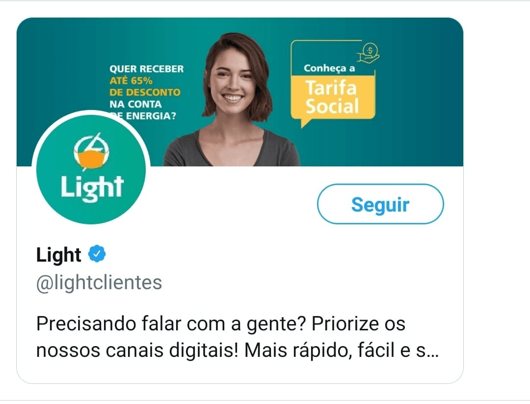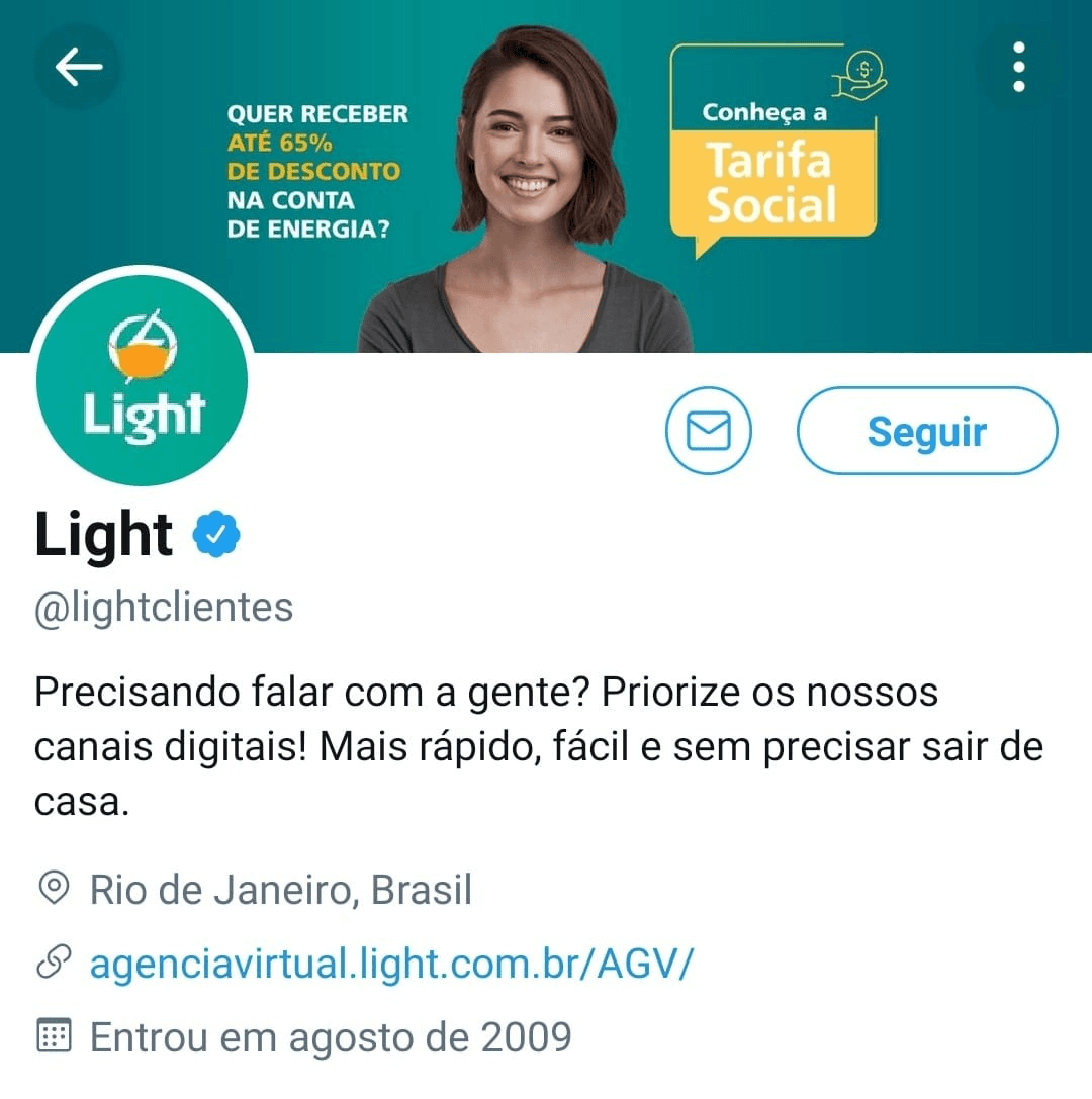 1) No Twitter, acesse a conta oficial da Light: @lightclientes