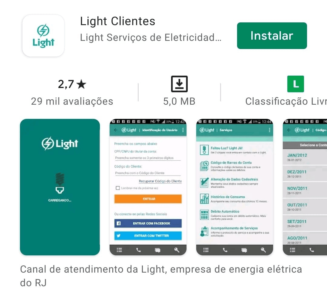 1) Baixe o aplicativo Light Clientes no seu smartphone, disponível para Android e iOS.