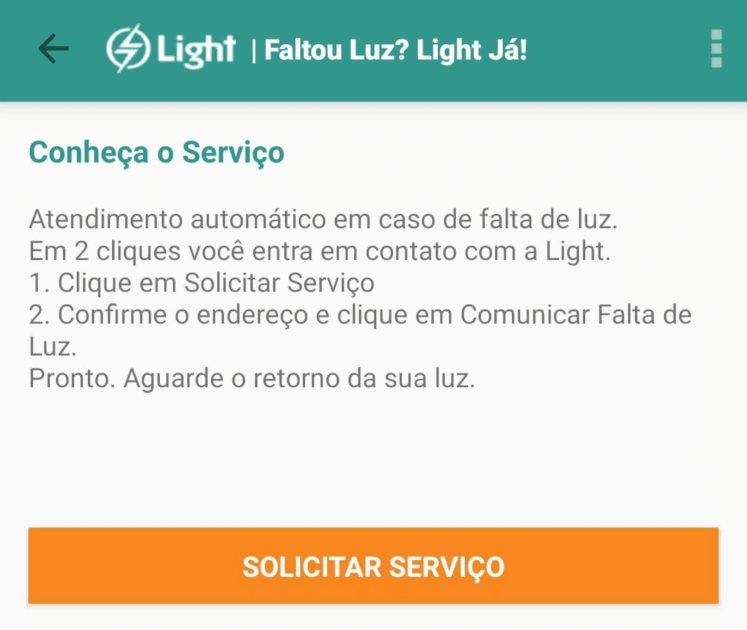 3) No menu inicial, selecione Faltou Luz, Light Já.