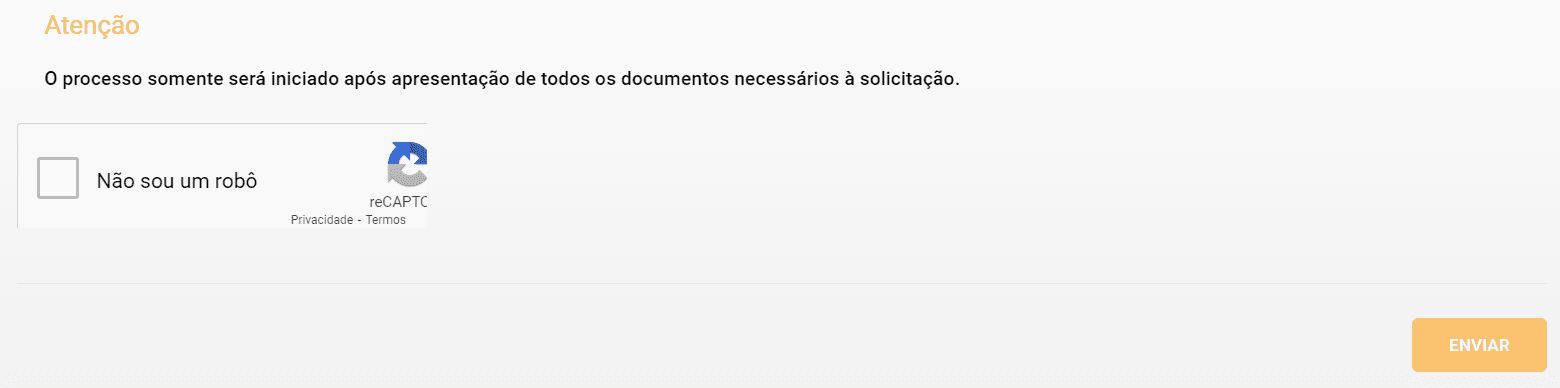 10) Após o preenchimento completo do formulário e envio da documentação, selecione Não sou um robô e clique em Enviar.