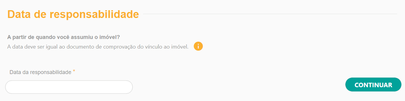 7) Antes de formalizar o pedido de troca de titularidade, informe a data a partir da qual você assumiu o imóvel em questão
