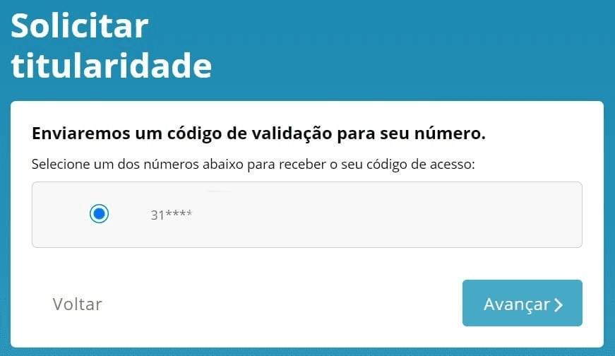 4) Confirme o seu número de telefone para o envio de um código de validação para dar prosseguimento à solicitação. Se estiver correto, selecione e avance.
